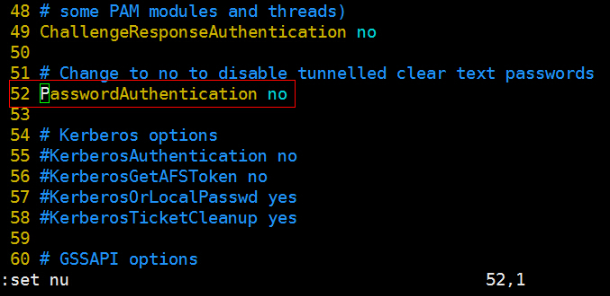 15、接着把其他服务器的密码登陆关闭(T1 P1 DB1),在etc 下面的 sshd_config 文件 我们去配置这个文件 找到一个52行的yes 该为 no 然后重启 使用远程登陆,然后连接不上我们就成功了